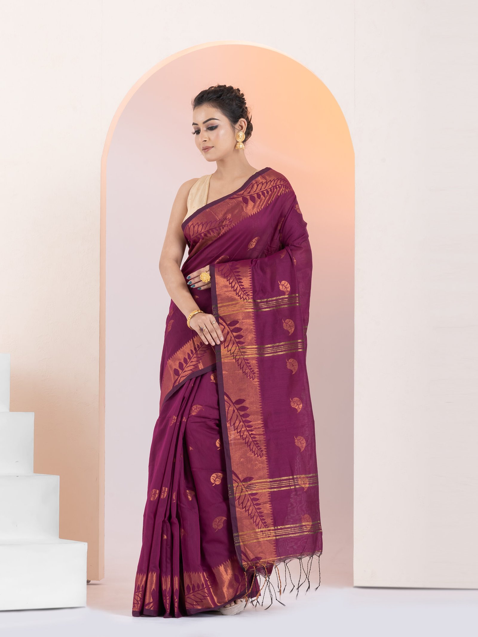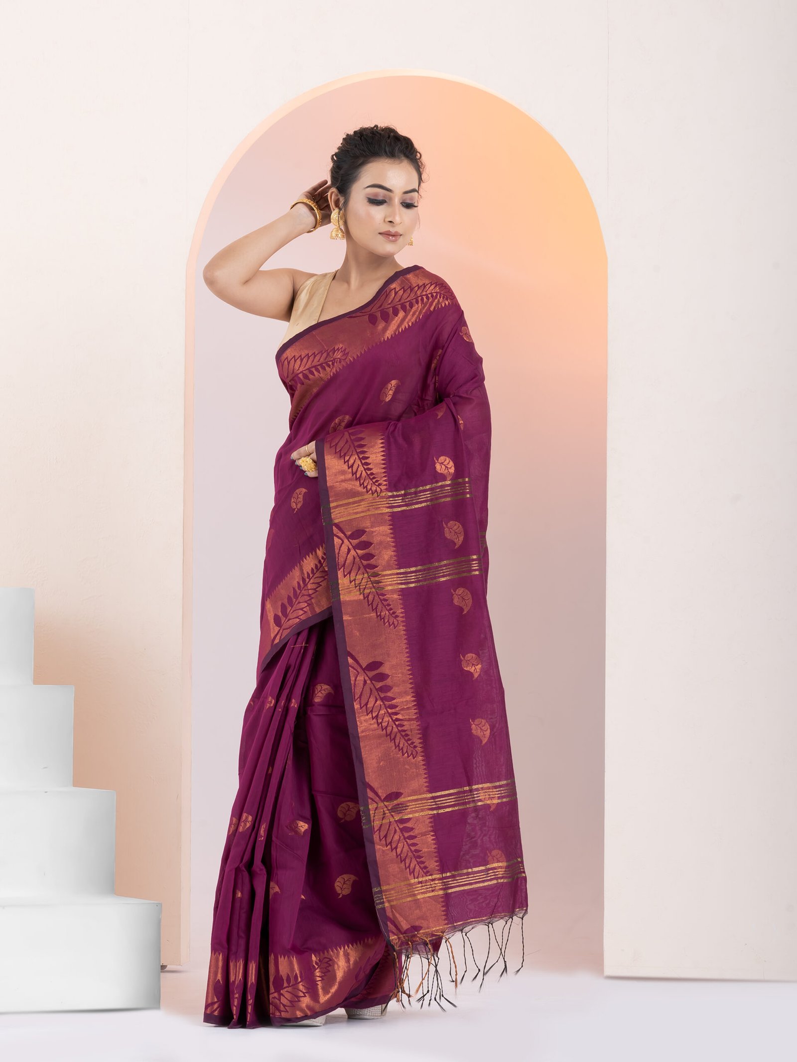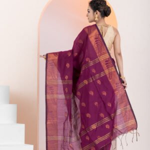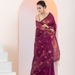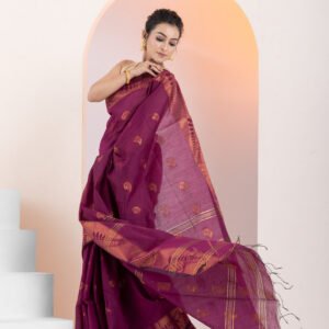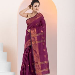 - Border: 2-side big copper zari border, enhancing the saree’s elegance
